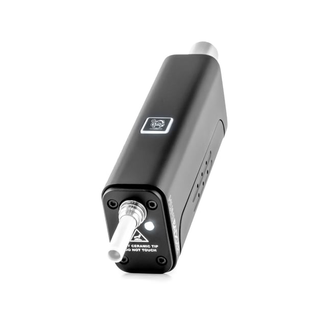The HUNI BADGER’s portable design makes it easy for you to consume your favorite herbal extracts anytime, anywhere. It is powered by a single rechargeable 18650 Lithium-Ion battery paired with a one-button control: Press 5 times to turn on and the square LED indicator glows white. Once the device is turned on, the ceramic tube heating element warms up to operating temperature in merely ten seconds. After it's heated up, you’re ready to make contact with your favorite extracts. As a safety feature, the device will automatically shut off after 60 seconds of use. Also included within the magnetic cover is a removable glass container we call the HuniPot. You can used it to conveniently store and use your extracts. The included 14mm and EGO adapters works directly as mouthpieces, or can be attached to optional bubblers for water filtration if desired.