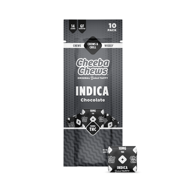 Original award winning chocolate taffy from Cheeba Chews. Indica dominant THC with a splash of CBN. 10mg per chew | 10 chews per package | 100mg total THC
